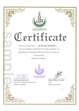 一般社団法人 日本ハラルファンデーションでは、シャリア法に則ったハラル基準で食品、 食材のハラル認定をその成分分析結果と、